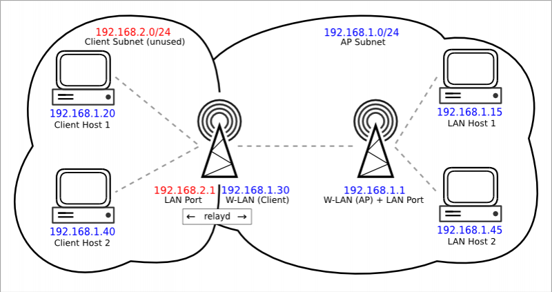 https://openwrt.org/docs/guide-user/network/wifi/relay_configuration 의 번역판이라고 보면 된다.